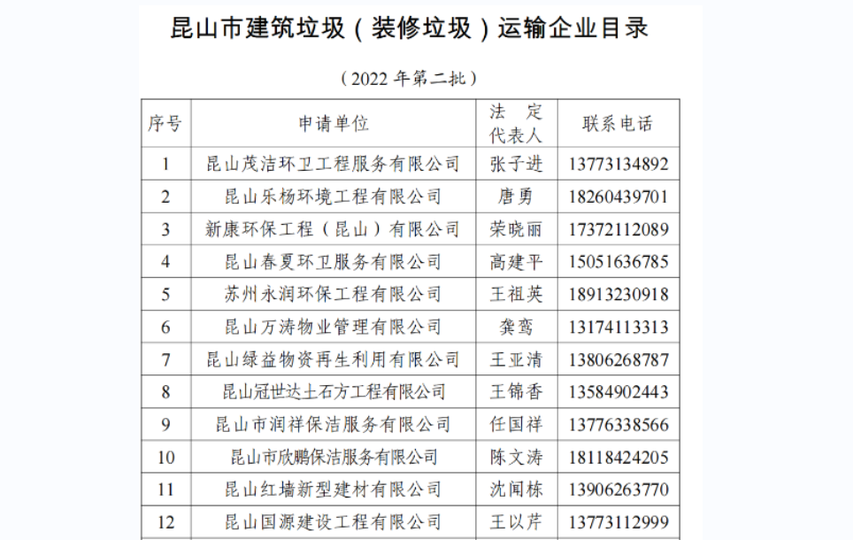 2022年8月16日本公司通過核準,納入《昆山市建筑垃圾(裝修垃圾)運輸企業目錄》管理
